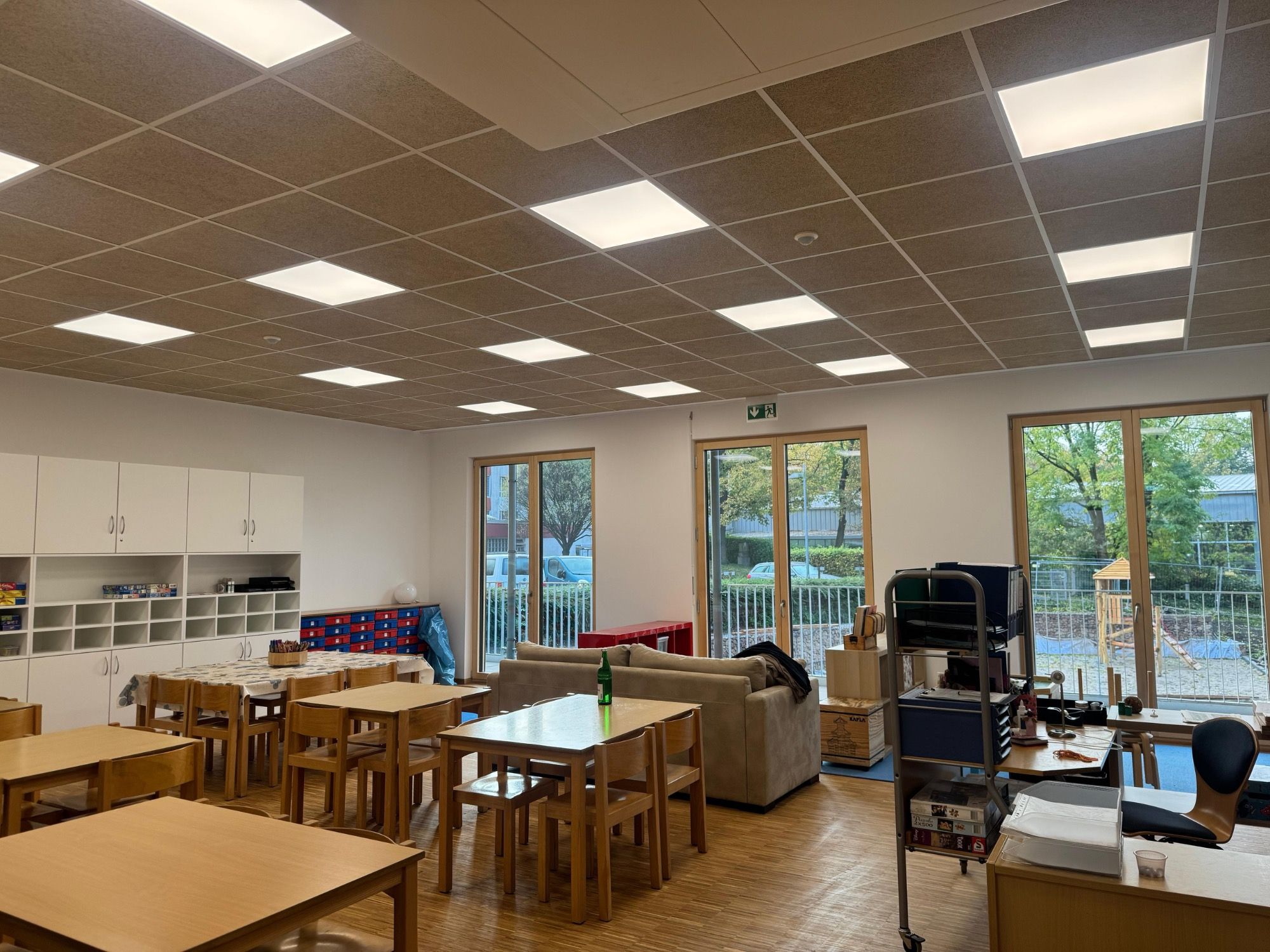 Wir konnten in 2024 unsere Baustelle in Essen, Rosastraße erfolgreich abschließen und sind sehr glücklich und zufrieden über die Ergebnisse. Wir haben sowohl die Installtionsebenen die Rasterdecken in verschwiedenen Varianten und natürlich einige Wände hier gemacht. Außerdem waren wir beteiligt an dem Bau der Modulelemente und den Zusammenbau dieser zu Raummodulen.